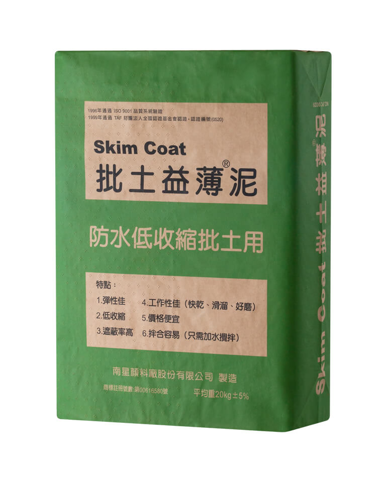 加水攪拌均勻即成為立即可用的膏狀批土,遮蓋性強、工作性佳、快乾、滑溜、不垂流。施工面好,好磨、細膩、光滑,還有一點防水效果。